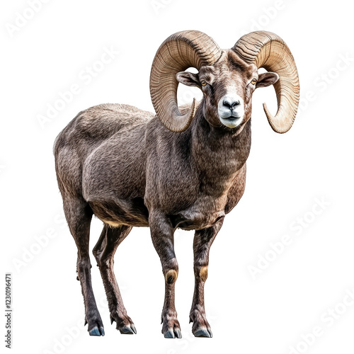 Isolated Full Body Brown Bighorn Sheep with Majestic Horns