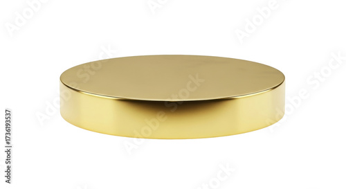 Isolated, golden lid with glossy reflection in front, smooth cylinder shape, eye level shot