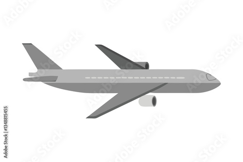 Isolated Gray Airplane Illustration, Jet with Wings, Tail, & Engine, Isolated Plane