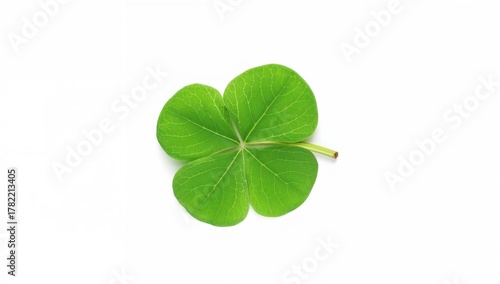 Isolated green four-leaf clover leaf on a white surface, symbolizing good luck