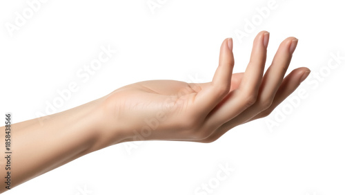 hand, isolated, woman, female, arm, skin, caucasian, beautiful, gesture, human, finger, beauty, young, people, body, closeup, person, care, studio, health care, shape, model, up, palm, out, reaching, give, ask, receive, wanting, offering, request, reaching out, upward, displaying, presenting, advertising, promotion, fingernail