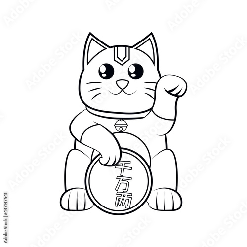 lucky, culture, cat, japanese, vector, illustration, traditional, luck, outline, japan, isolated, asian, white, chinese, symbol, money, fortune, tradition, good, oriental, cute, animal, asia, gold, background, clip art, china