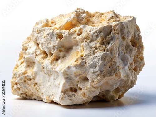 Isolated Limestone Rock on White Background - Natural Stone Texture