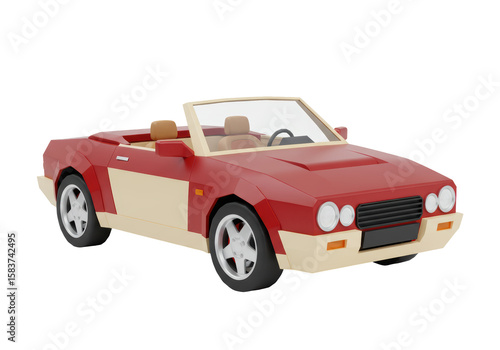 Isolated Low Poly Red and Cream Convertible Car