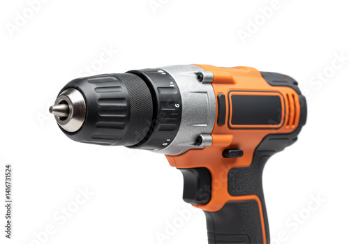 Isolated Orange and Black Cordless Drill Close-up