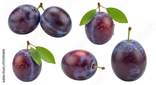 Isolated plums showing a close up of fresh plums full of moisture and natural colors