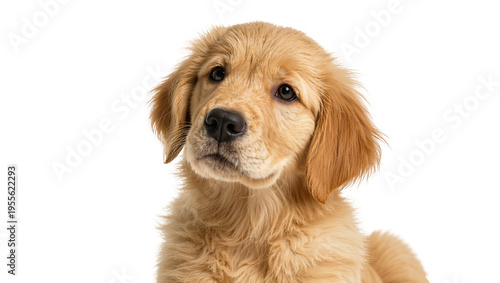 Isolated portrait of a cute, fluffy Golden Retriever puppy with an adorable expression