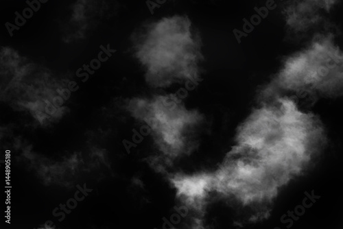 Isolated Real White Clouds on Black Background for Visual Effects on Photos and Designs