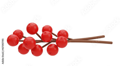 Isolated Red Berries on Sticks 3D Render