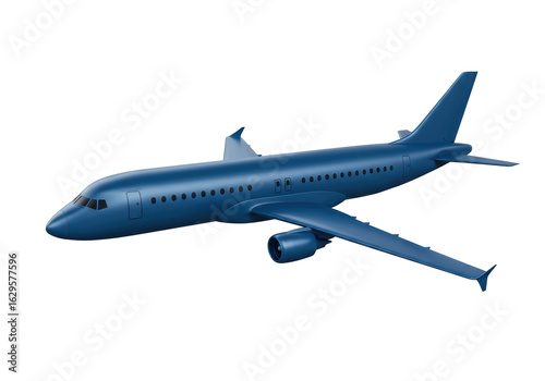 Isolated Sleek Blue Commercial Passenger Airplane in Flight Position
