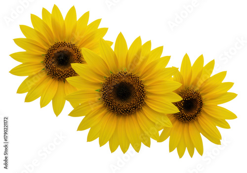 sunflower, flower, yellow, isolated, bloom, blossom, floral, flora, summer, vibrant, bright, beautiful, nature, plant, closeup, macro, gold, garden, spring, seasonal, decorative, sun, botanical, object, design element, cheerful, fresh, growth, natural, three, group, arrangement, graphic, pattern, cut-out, clip path