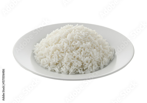 Isolated Transparent Background Plate of Cooked White Rice Dish Meal