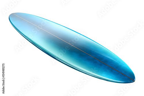 Isolated turquoise surfboard on a transparent background with a minimalist aesthetic