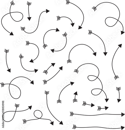 Isolated vector hand drawn arrows set on a white background