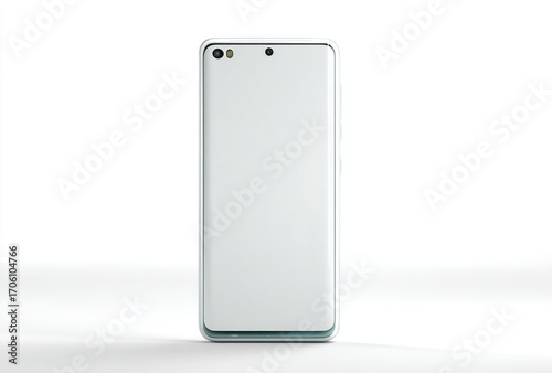 Isolated white phone with a clean, modern design. The screen is blank, and the device is set against a plain white background