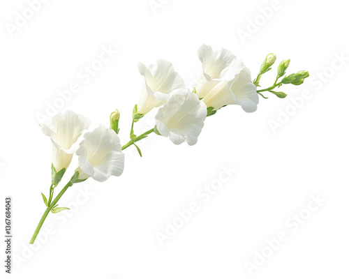 Isolated White Trumpet Flowers on Black Background - PNG Transparent Image, Floral Blossom and Buds