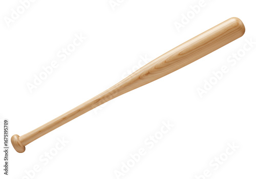 Isolated wooden baseball bat, sport equipment for training and game, hardwood texture