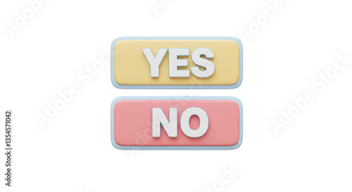 yes, no, buttons, choice, decision, option, pastel, yellow, pink, blue, isolated, three-dimensional, render, design, element, graphic, illustration, icon, object, symbol, selection, agreements, disagreement, approve, reject, confirm, decayed, vote, question