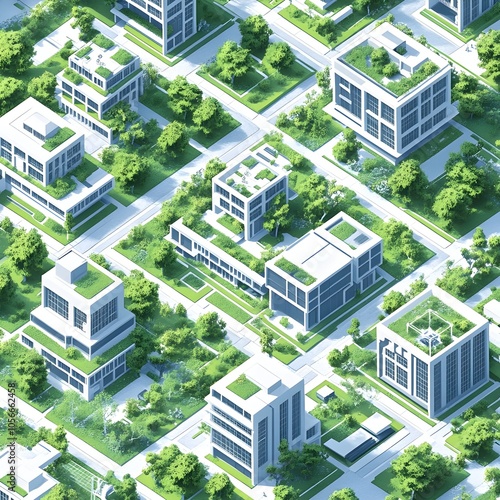 Isometric Blueprint of a Blockchain Based Eco Town with Sustainable and Modular Building Designs