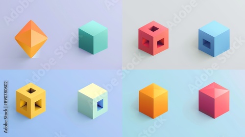 cube, three-dimensional, isometric, geometric, shape, model, printing, representation, icon, vector, design, illustration, graphic, symbol, box, square, triangle, pyramid, sphere, cone, cylinder, torus, polyhedron