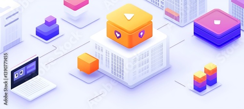 architecture, abstract, block, building, box, city, communication, connection, cube, datum, digital, dot, diagram, element, flat, graphic, grid, icon, illustration, infographic, cyberspace, isometric, laptop, layout, line, modern, network, node, online, orange, perspective, platform, processing, purple, rendering, representation, shape, side, square, structure, technology, trend, white, workflow