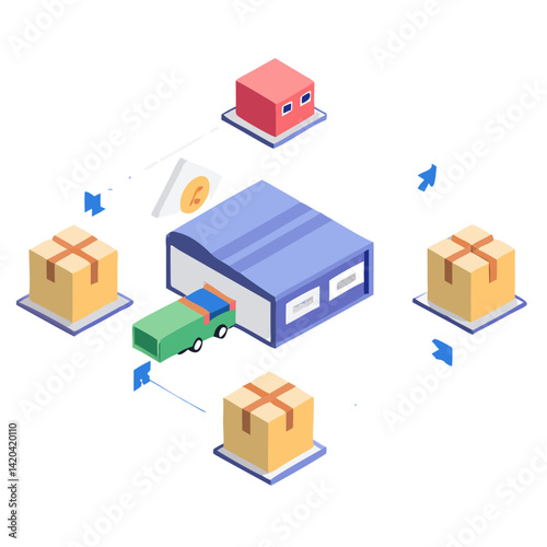 delivery, isometric, truck, warehouse, logistic, box, transportation, shipping, cargo, distribution, industry, service, modern, parcel, package, export, import, network, global, business, shipment, online, trade, commerce, storage, e-business, digital, technology, isolated, illustration, vector, creative, design, art, transport, mail, product, order, retail, shopping