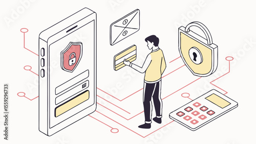 security, datum, protection, digital, smartphone, mobile, lock, padlock, shield, credit, card, payment, electronic mail, envelope, authentication, verification, access, account, login, password, safe, secure, online, cyberspace, network, privacy, cyber, information, technology, communication, transaction, financial, banking, identity, encryption, code, control, system, user, interface, illustration, design, graphic, concept, isometric, vector, modern, flat