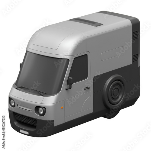 van, vehicle, transport, automotive, delivery, grey, commercial, cargo, transportation, truck, modern, design, auto, isometric, illustration, automobile, business, minivan, utility, service, forward, drive, urban, city, wheel, exterior, style, object, moving, freight, equipment, journey, industry, machine, mechanical, render, white, background, isolated, cut-out, no people, detailed, professional, clear, precise, dynamic, stock