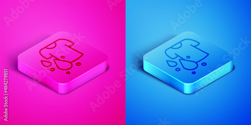 Isometric line Dirty t-shirt icon isolated on pink and blue background. Square button. Vector