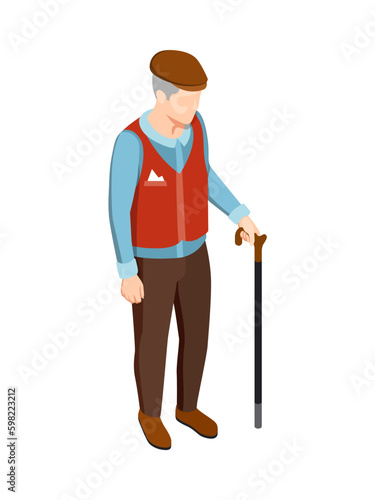 elderly, old, adult, retirement, social, leisure, senior, icon, pension, pensioner, design, symbol, concept, decorative, object, element, character, elder, retire, human, lifestyle, aged, age, person, grandparent, walking, cane, stick, disabled, man, hat, male, disability, grandfather, grandfather, grandfather, health, arthritis, three-dimensional, isometric, vector, illustration