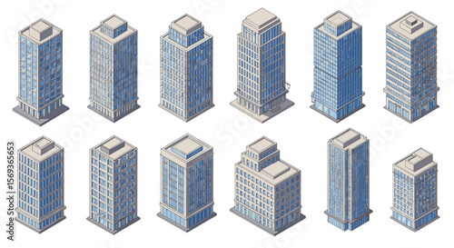 Isometric vector illustration of skyscraper collection for urban design and architecture projects