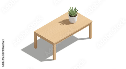 table, wood, plant, pot, isometric, furniture, object, minimalist, design, shadow, indoor, decoration, home, office, desk, surface, wooden, green, white, isolated, render, illustration, graphic, simple, clean, modern, interior, houseplant, succulent, foliage, container, decor, element, room, living, workspace, studio, product, display, empty, space, perspective, angle, light, shade, natural, organic, earthy, brown