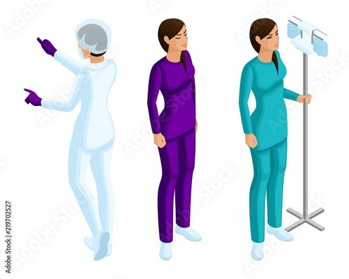 Isometry of a woman medical workers, a 3d nurse, beautiful girls in medical clothes in the process of work