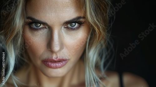 woman, one person, beauty, adult, young adult, portrait, closeup, blonde hair, 1, woman, looking, human face, missy, studio shot, female, sensuality, fashion model, only, front view, young, long hair, lifestyle, fashion, cute, elegance, beautiful woman, adults only, human hair, femininity, freshness, glamour, indoor, head shot, black background, confidence, human skin, human eye, brown hair, coiffure, real people, blue eye, casual clothes, smiling