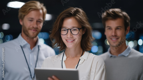IT Team Analyzing Server Data in a Modern Data Center