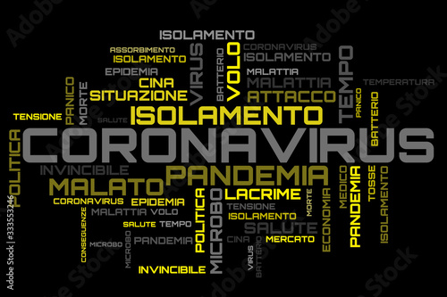 Italian coronavirus topic yellow word cloud background