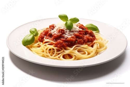 Italian pasta with sauce parmesan cheese on a white oval plate
