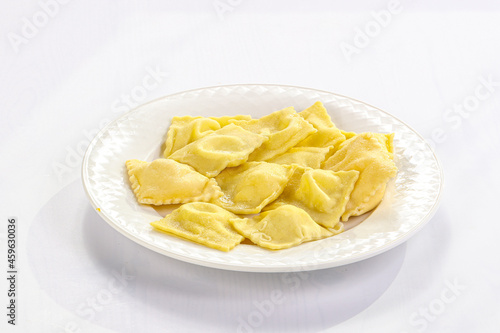 italian, tortellini, dumpling, healthy, food, cookery, lunch, pasta, sauce, plate, epicure, fresh, meal, white, dish, dinner, italy, cheese, green, traditional, ravioli, closeup, yellow, isolated, background, basil, table, diet, meat, raw