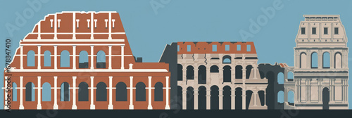 Italy Coast Famous Landmarks Skyline Silhouette Style, Colorful, Cityscape, Travel and Tourist Attraction - Generative AI