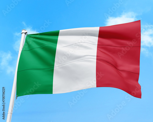 Italy flag fluttering in the wind on sky.