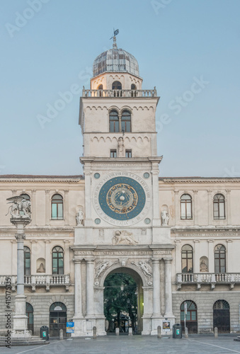 architecture, clock, clock-tower, italian, italy, morning, nobody, padova, piazza, town square