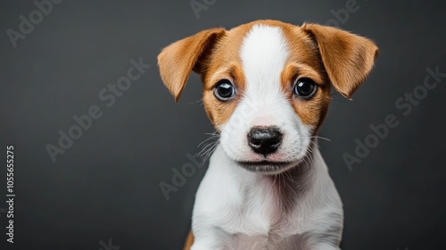 Jack Russell Terrier puppy on a gray backdrop