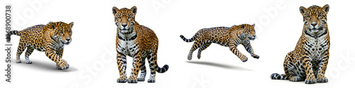 Jaguar Wild Life Animal Set, Isolated on A White Background