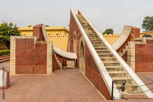 Jaipur, Rajasthan, India; Feb, 2020 : a sundial in Jantar Mantar, Jaipur, Rajasthan, India