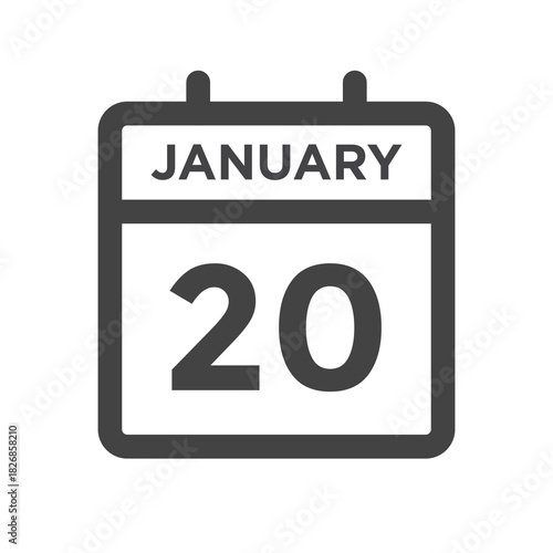 jan, 20, jan, 20, calendar, icon, design, appointment, date, day, deadline, interface, user, simple, symbol, black, white, isolated, new, number, 2021, 2022, 2023, 2024, 2025, line, outline