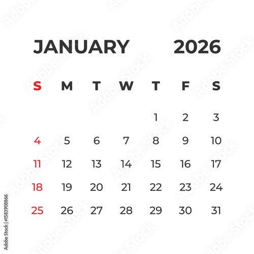 2026, jan, calendar, grid, vector, template, text, graphic, design, layout, typography, isolated, white, background, page, appointment, daily, planner, date, week, month, schedule, organise, monthly, paper, minimal, office