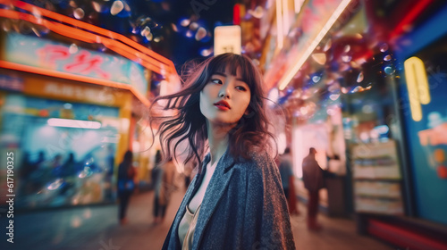 travel, japan, asia, night, light, city, beauty, model, person, woman, lady, hair, brunette, glamour, face