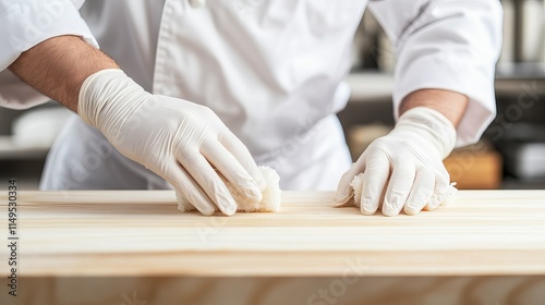 chef, sushi, japanese, preparation, cooking, food, cookery, kitchen, fresh, ingredient, hand, glove, surface, wooden, slice, skill, artisan, culinary, hygiene, workspace, traditional, rice, fish, knife, eatery, service, epicure, expert, tasty