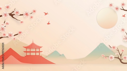 landscape, cherry, blossom, japan, serene, beauty, nature, calmness, flower, mountain, traditional, scenery, peaceful, art, spring, culture, illustration, graphic, design, aesthetic, calm, relaxation, zen