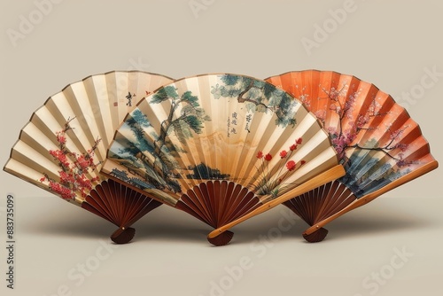 japanese, delicate, painted, scene, rib, rhythmic, pattern, accessory, cooling, art, craft, traditional, summer, festival, dance